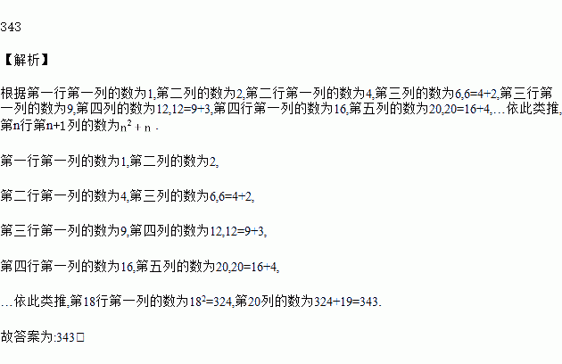 (题文)正整数按图中的规律排列,请写出第18行,第20列的数字:_____.