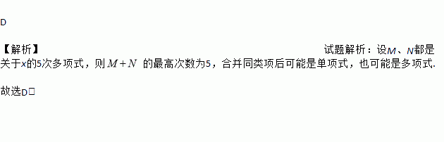设M、N都是关于x的5次多项式,则M+N是( )
