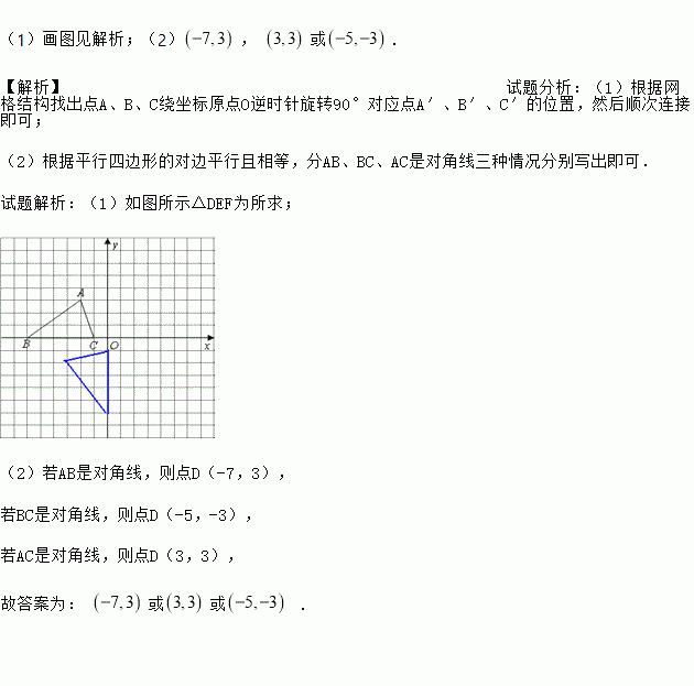 (1)画出将△ABC绕坐标原点O逆时针旋转90°图形.