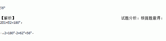 用平行四边形纸条沿对边AB、CD上的点E、F所在的直线折成V字形图案,已知图中∠1=62°,则∠2的度数是________