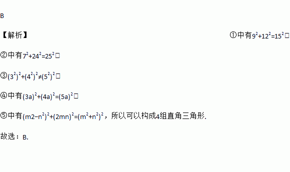 下列各组线段中的三个长度:①9,12,15;②7,24,25;③32,42,52;④3a,4a,5a(a>0);⑤m2﹣n2,2mn,m2+n2(m,n为正整数,且m>n)其中可以构成直角三角形的有( )
