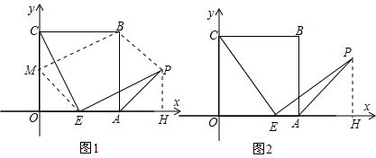 分析:(1)过P作PH垂直于x轴,交x轴于点H,再由CO与OE垂直,利用垂直的定义得到一对直角相等,由CE与EP垂直,得到一个角为直角,利用平角的定义得到一对角互余,而直角三角形OCE中两锐角互余,利用同角的余角相等得到一对角相等,利用两对对应角相等的两三角形相似可得出三角形OCE与三角形PHE相似,由相似得比例,将各自的值代入得到关于HP的方程,求出方程的解得到HP的值,在直角三角形OCE与直角三角形EPH中,分别利用勾股定理求出CE与EP,即可判断得到CE=EP;