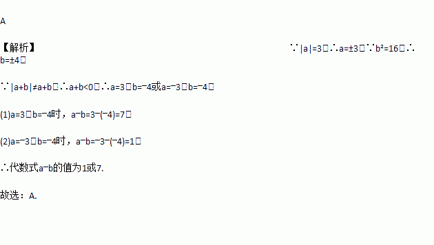 已知|a|=3,b2=16,且|a+b|≠a+b,则代数式a﹣b的值为( )