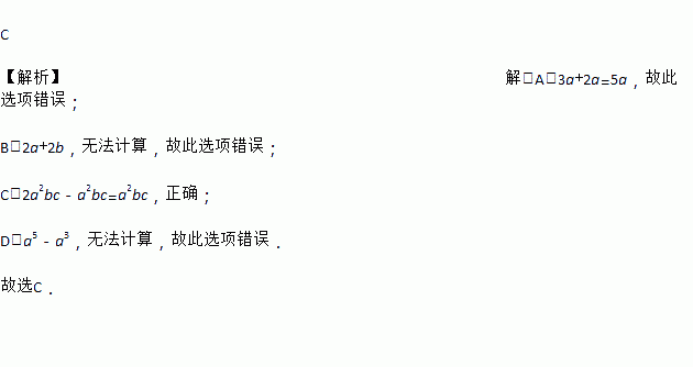 C. 2a2bc﹣a2bc=a2bc D. a5﹣a3=a2
