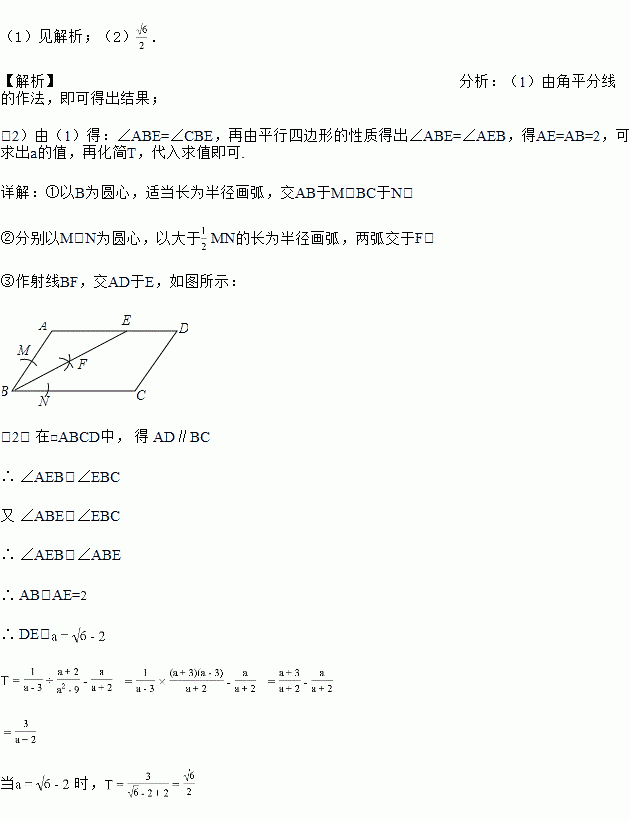 (1)利用尺规作∠ABC的平分线BE,交AD于点E;(保留作图痕迹,不写作法)