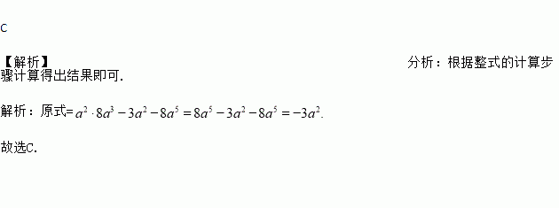 计算a2(2a)3-a(3a+8a4)的结果是 ( )