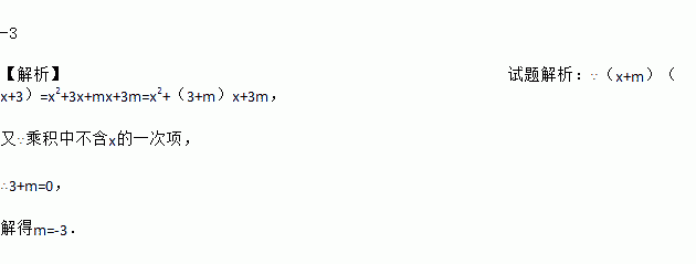 若(x+m)与(x+3)的乘积中不含x的一次项,则m的值为______________.