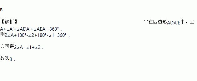 如图,把三角形纸片沿折叠,当点落在四边形的内部时,与之间有一种数量关系始终保持不变,请试着找一找这个规律,你发现的规律是( )