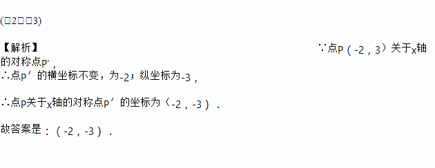 点P(-2,3)关于x轴的对称点P′的坐标为________.