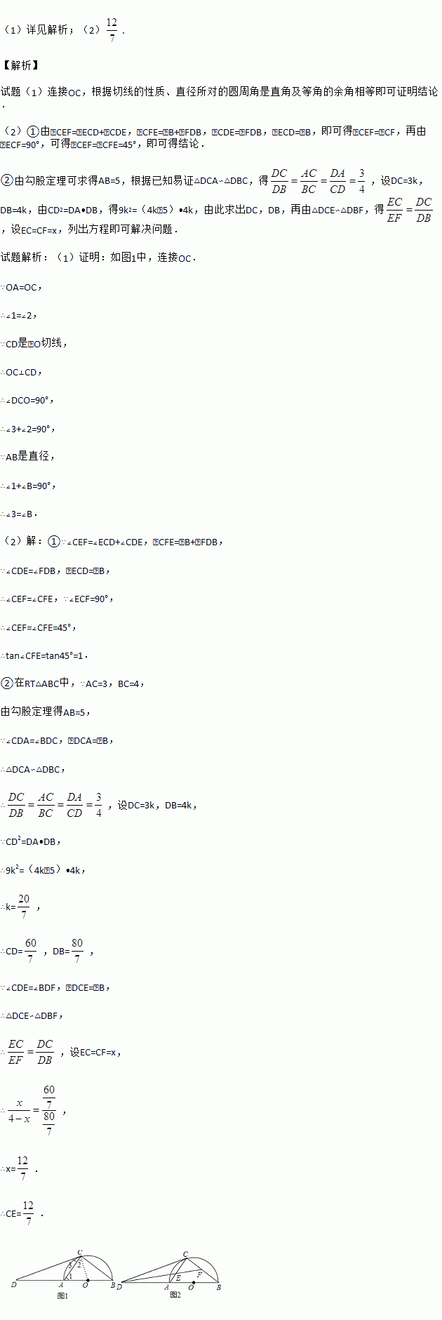 如图1,AB为半圆O的直径,D为BA的延长线上一点,DC为半圆O的切线,切点为C.