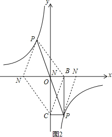 (3)由于P、N的位置不能确定,故应分①当以BC为平行四边形一边,点P在第二象限的反比例函数上;当以BC为平行四边形一边,点P在第四象限的反比例函数上;当以BC为对角线时三种情况进行讨论.