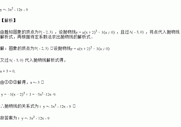 已知抛物线图象的顶点为,且过,则抛物线的关系式为________.