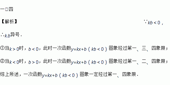 一次函数y=kx+b(kb<0)图象一定经过第__________ 象限.