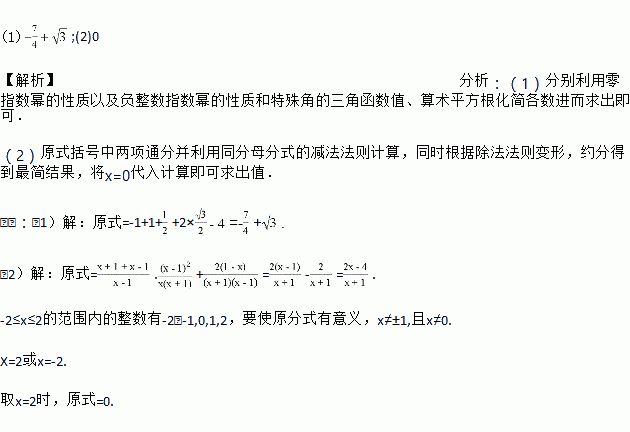 (2)先化简,再求值:,然后从-2≤x≤2的范围内选取一个合适的整数作为x的值代入求值.