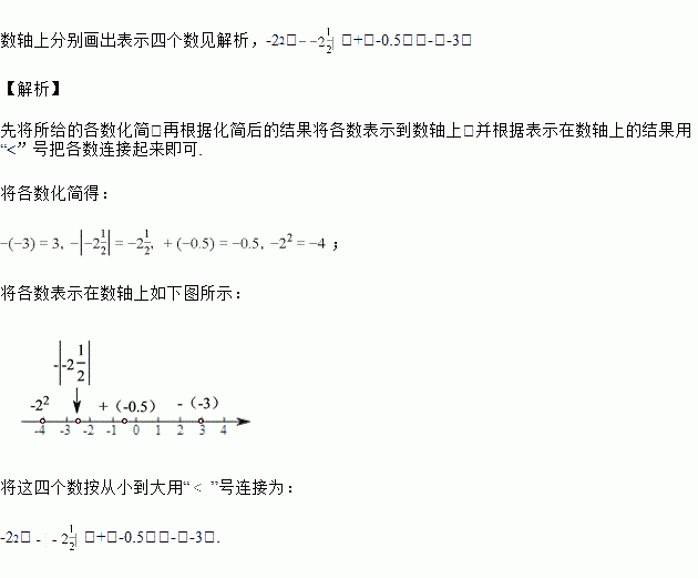 在数轴上分别画出表示下列四个数的点:-(-3),,+(-0.5),-22,并将这四个数从小到大用“”号连接.