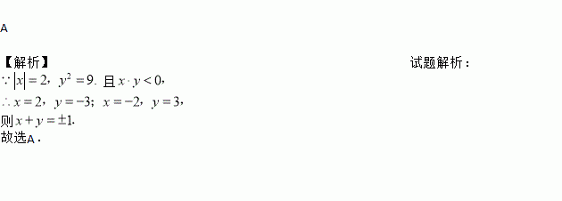 已知︱x︱=2,y=9,且x·y<0,则x+y=( )