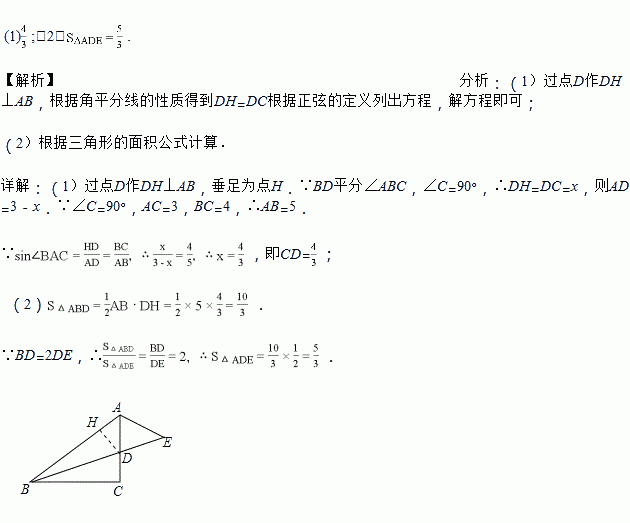 (1)求线段 CD 的长;(2)求△ADE 的面积.