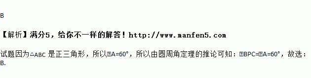 如图,正三角形ABC内接于⊙O,动点P在圆周的劣弧AB上,且不与A、B重合,则∠BPC等于( )