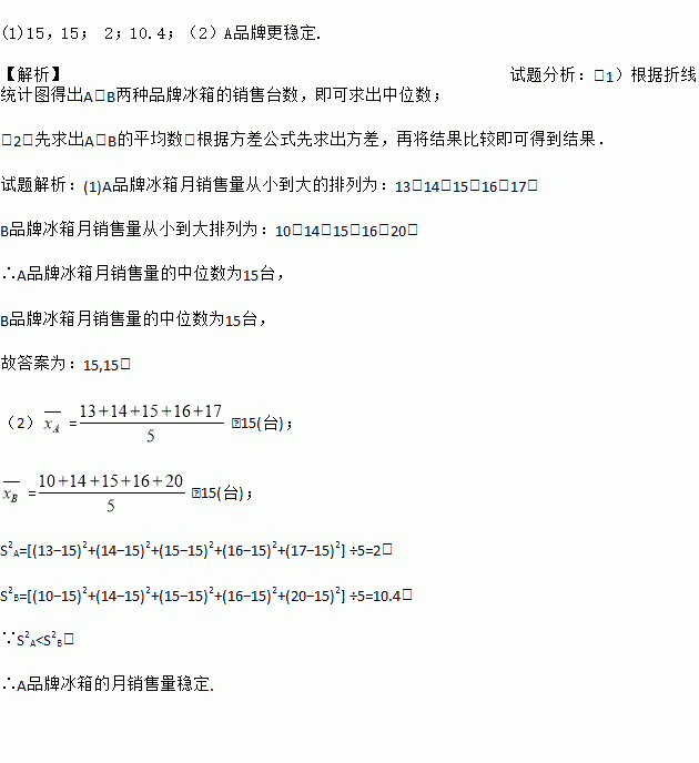 (2)计算两种品牌月销售量的方差,比较并说明该商场1~5月这两种品牌冰箱月销售量的稳定性.