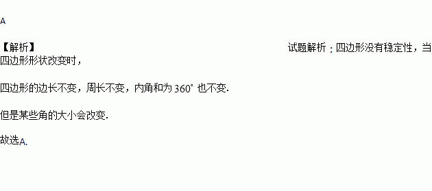 四边形没有稳定性,当四边形形状改变时,发生变化的是( )