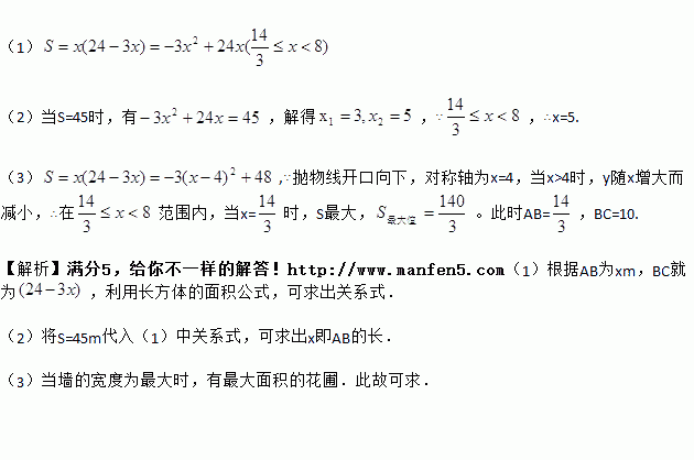 (2)如果要围成面积为45m2的花圃,AB的长是多少米?