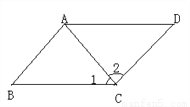 如图,□ABCD中,∠1 = ∠B =50°,则∠2 =________.