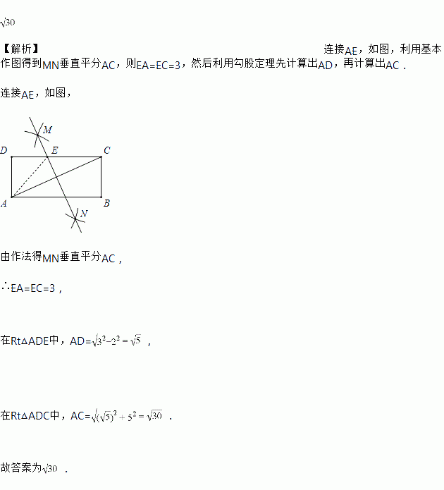 如图,在矩形中,按以下步骤作图:①分别以点和为圆心,以大于的长为半径作弧,两弧相交于点和;②作直线交于点.若,,则矩形的对角线的长为__________.