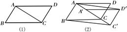 4、如图所示,将图(1)中的△ACD,沿AC方向平移,得到图(2),连接AD′,则AD′、BC′的关系为( )