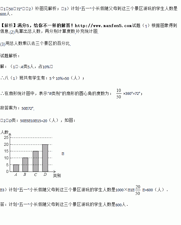 (3)若该校七年级有1000名学生,求计划“五一”小长假随父母到这三个景区游玩的学生多少名?