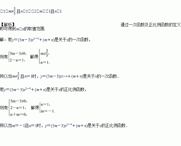 当m,n为何值时,是关于x的一次函数?当m,n为何值时,y是关于x的正比例函数?