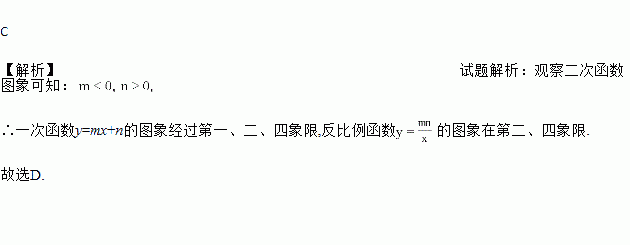 已知二次函数y=(x+m)2–n的图象如图所示,则一次函数y=mx+n与反比例函数y=的图象可能是( )