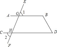 如图,已知∠1=∠2,∠D=60?,求∠B的度数.