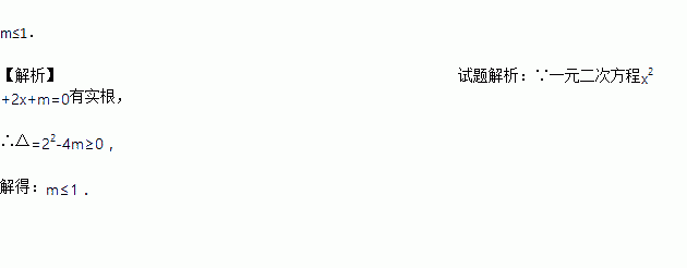 已知关于x的一元二次方程x2+2x+m=0有实数根,则m的取值范围是 .