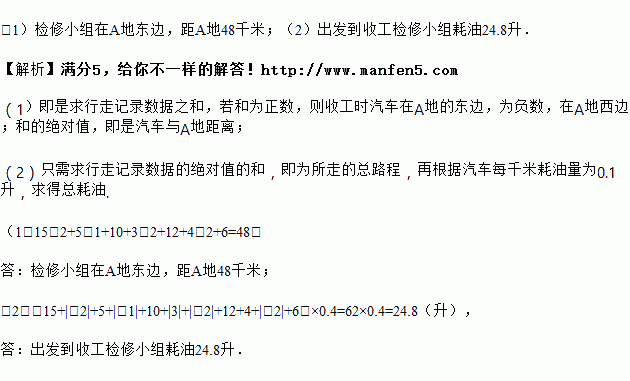 (2)若每千米汽车耗油量为0.4升,求出发到收工汽车耗油多少升.