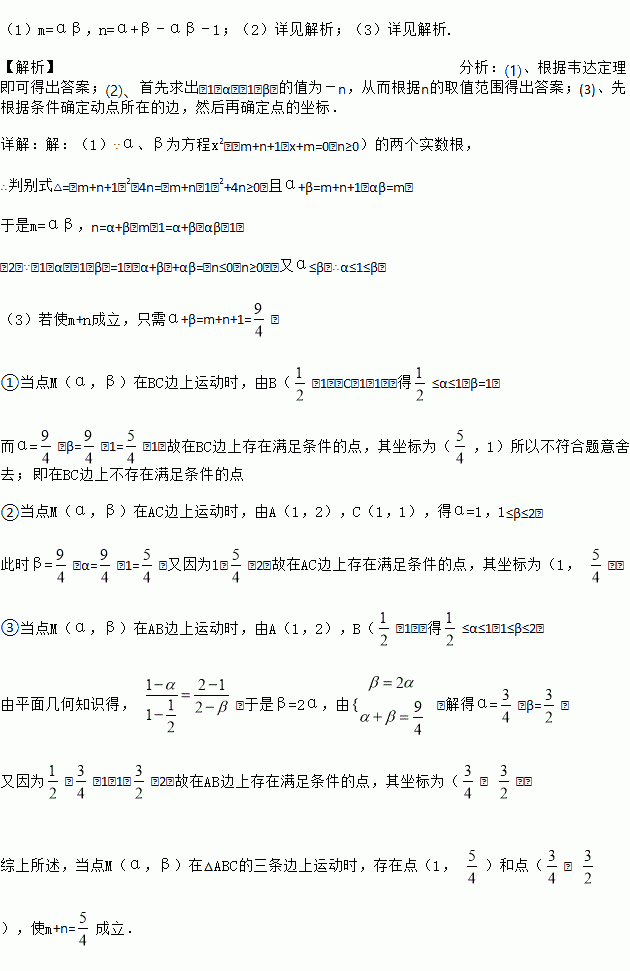 已知关于x的方程x2﹣(m+n+1)x+m(n≥0)的两个实数根为α、β,且α≤β.