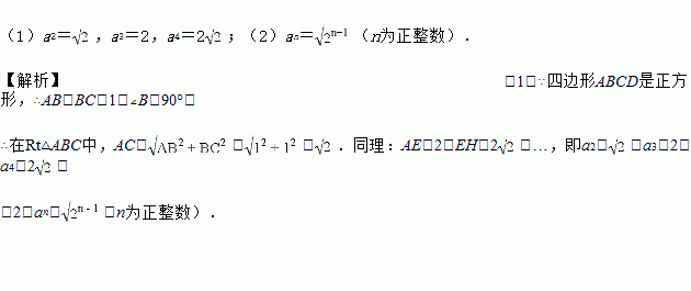 如图,设四边形ABCD是边长为1的正方形,以对角线AC为边作第二个正方形ACEF,再以对角线AE为边作第三个正方形AEGH,如此下去.