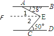 ∴∠1=∠BAE=28°,∠2=∠ECD=50°,