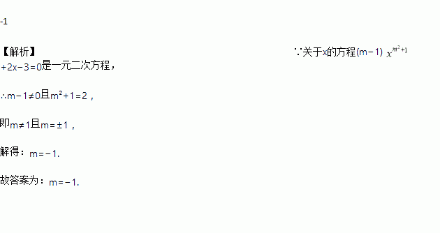 已知关于x的方程是一元二次方程,则m的值为________.