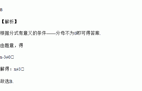 A. x>3 B. x≠3 C. x<3 D. x=3