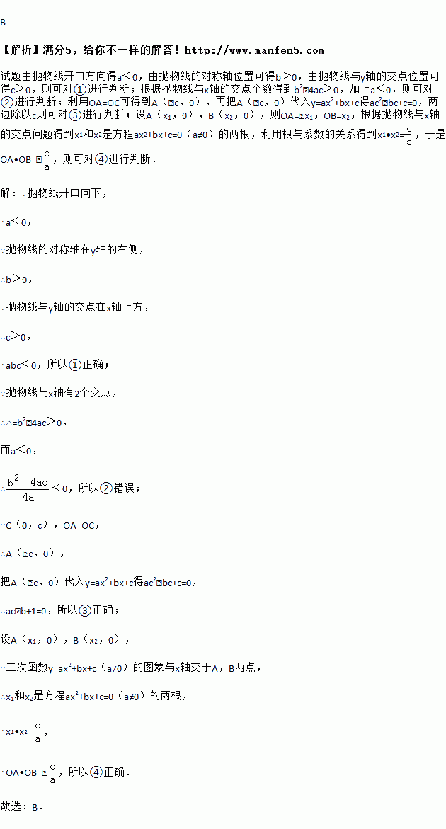 如图,二次函数y=ax2+bx+c(a≠0)的图象与x轴交于A,B两点,与y轴交于点C,且OA=OC.则下列结论:①abc<0;②