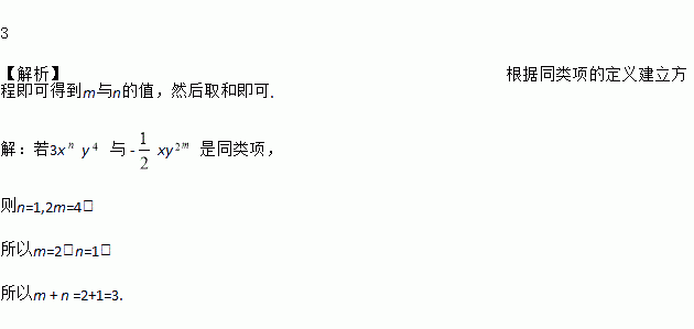 若3xy 与 -xy 是同类项,则m + n =__________.