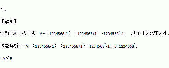 已知:A=1234567×1234569,B=12345682,比较A、B的大小,则A B.