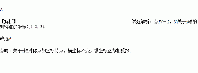 在平面直角坐标系中,点P(-2,3)关于x轴的对称点的坐标为( )