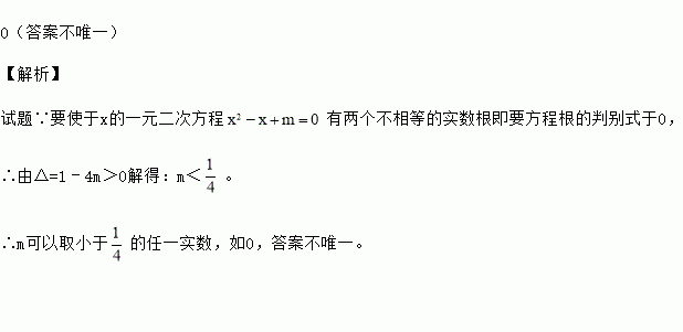写一个你喜欢的实数m的值 ,使关于x的一元二次方程有两个不相等的实数根.
