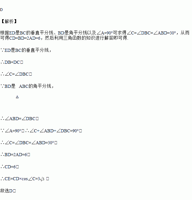 如图,在中,,AD平分,交BC于D,若,点D到边AB的距离为6,则BC的长是