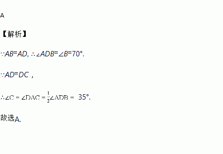 如图,在△ABC中,AB=AD=DC,∠B=70°,则∠C的度数为( )