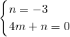 将(0,3),(-4,0)代入y=mx+n,