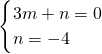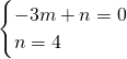 将(-3,0),(0,4)代入y=mx+n,