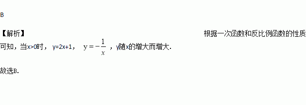 当x>0时,四个函数 y=—x ,y=2x+1, , ,其中y随x的增大而增大的函数有( )
