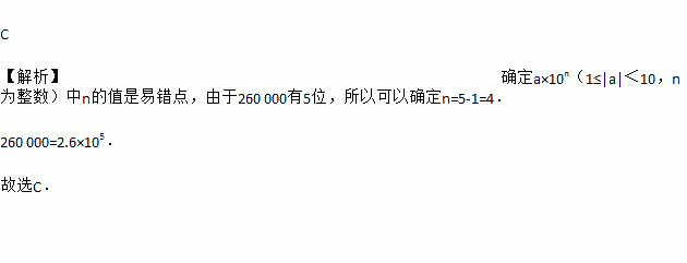 国家游泳中心——“水立方”是北京2008年奥运会场馆之一,它的外层膜的展开面积约为260000平方米,将260000用科学记数法表示应为( )